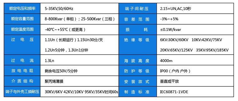 高壓補償組件由高壓電容器和高壓濾波電抗器組成。ELUX-BFM高壓電容器:采用聚丙烯薄膜電介質,無PCB、安全和環保性能的絕緣油。ELUX-BFM高壓濾波電抗器適用于6-35KV電力系統中,是無功